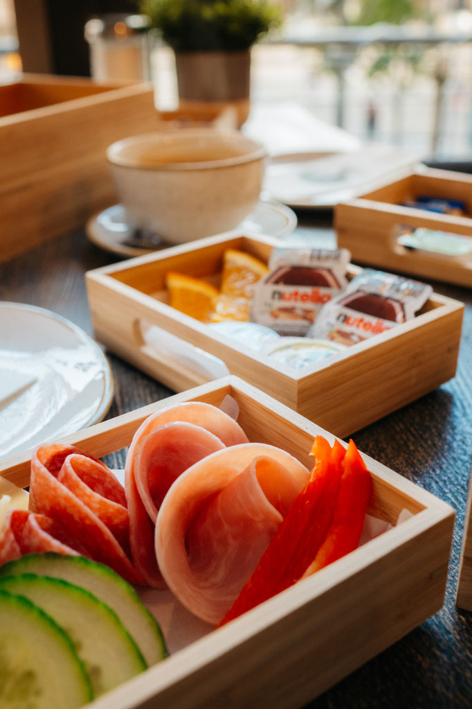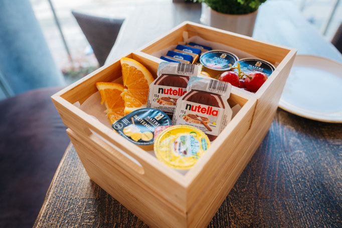 Die leckeren süßen Speisen werden zum einen um ein leckeres Frühstücksangebot mit frischen Brötchen kombiniert.